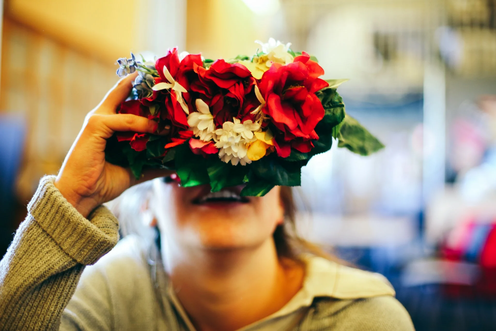 FAKE FLOWER COVERED HOMEMADE VIRTUAL REALITY HEADSET (2015)